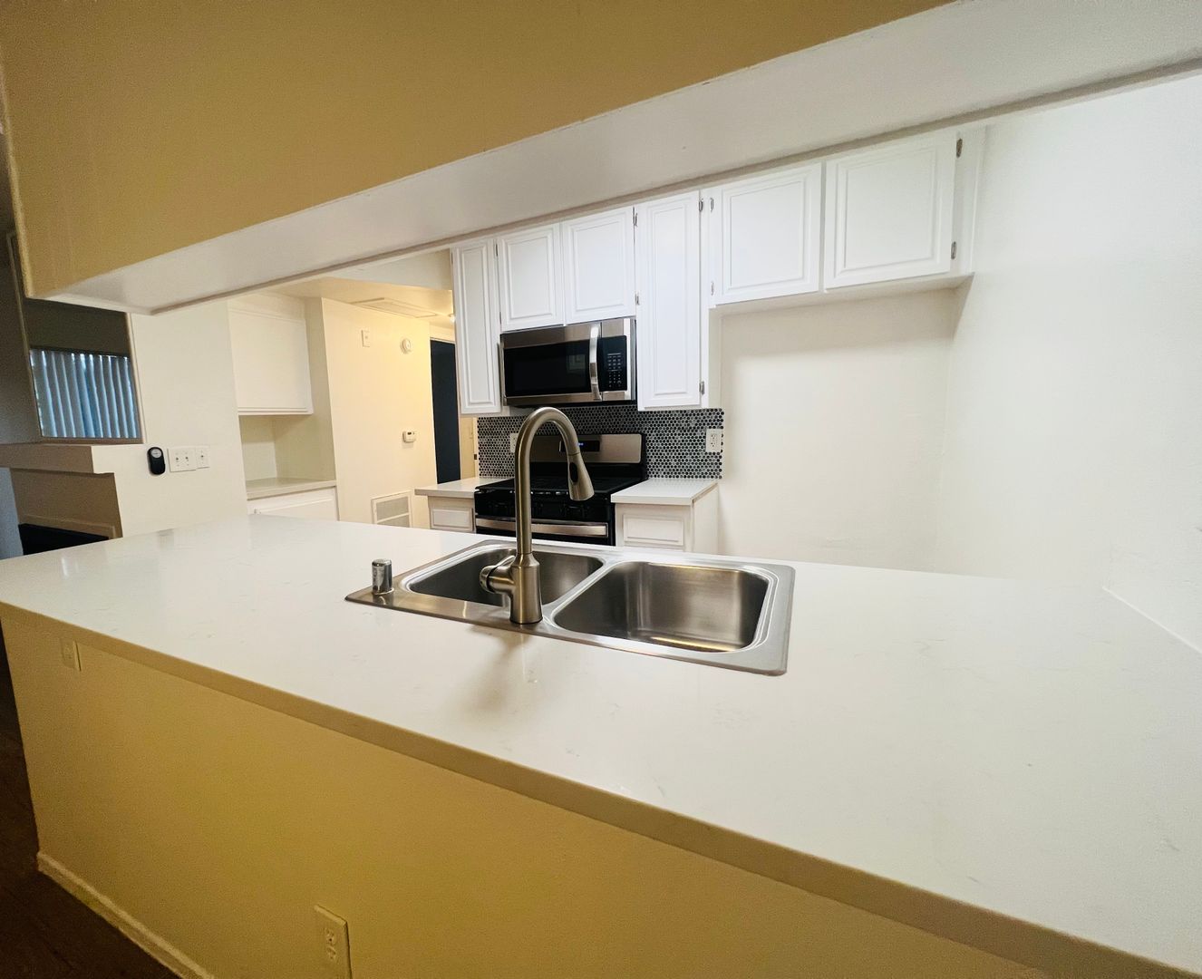 The kitchen is updated with quartz counters, coffee station, built-in microwave, dishwasher & gas range. This 40-unit building, located in the Civic Center of Van Nuys features a central courtyard with refinished pebble tec surface, front lobby, elevator, telephone intercom system to your landline or mobile phone, two level gated parking, updated outdoor BBQ, fire alarm system and laundry facility. The security deposit is $600 on approved credit. One year lease. One cat or dog is OK with a $500 pet deposit and $25 monthly pet rent.